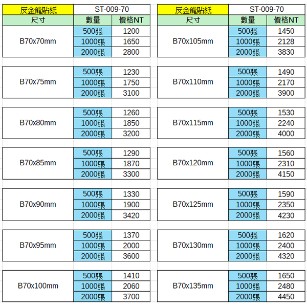 反金龍貼紙,霧金色底面,撕不破、防水、耐磨、遮蔽性高防潮。上亮膜。