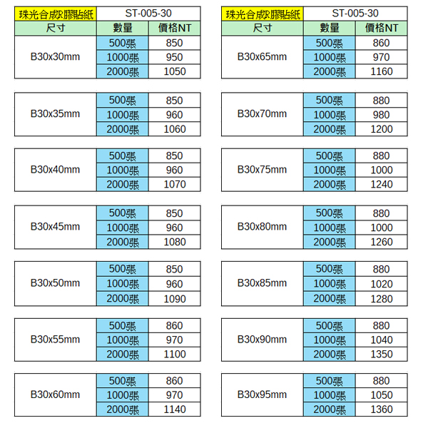 珠光合成R膠貼紙30x30~30x95mm(1000張)