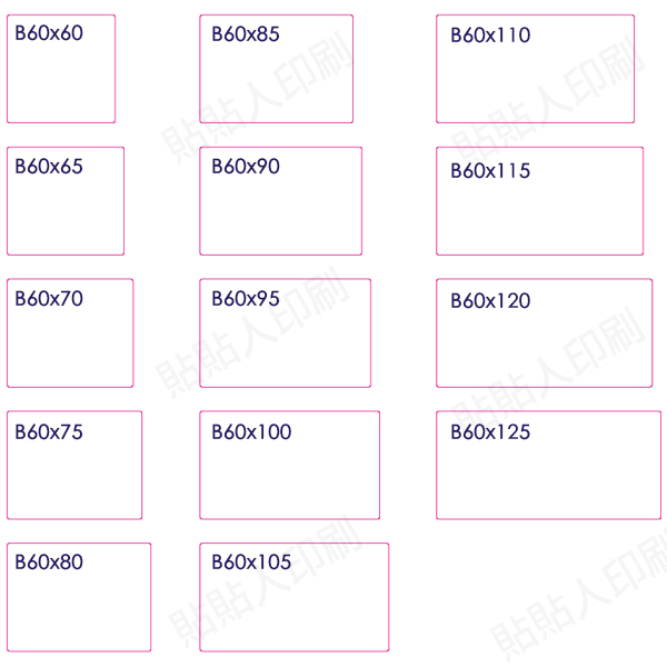 銅版R膠貼紙60x60~60x125mm(500張)