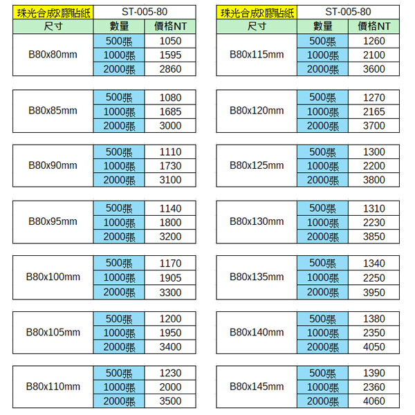珠光合成R膠貼紙80x80~80x145mm(2000張)