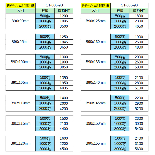 珠光合成R膠貼紙90x90~90x155mm(2000張)